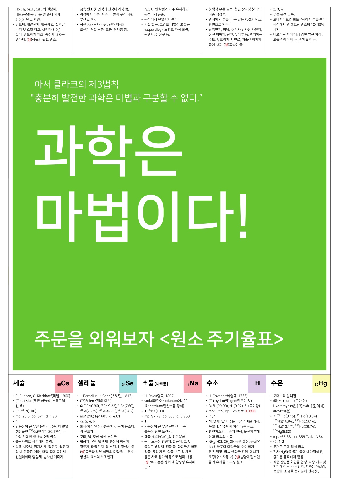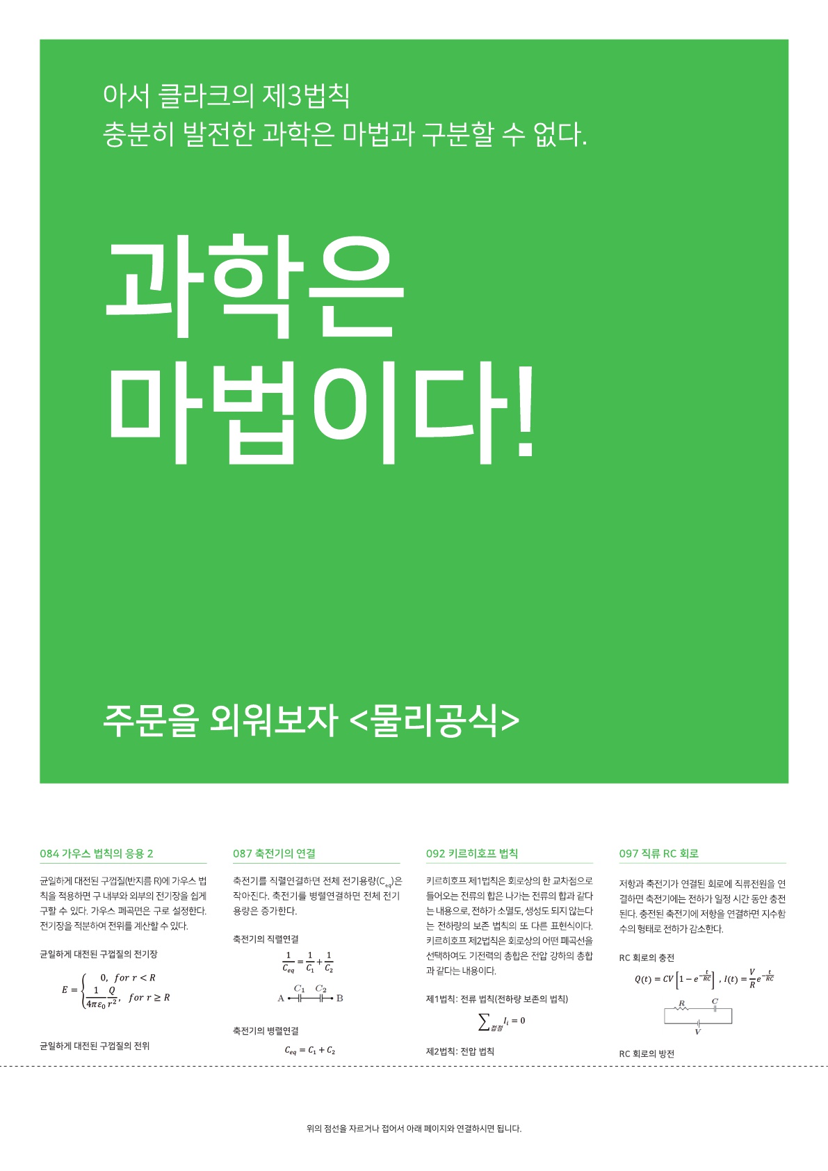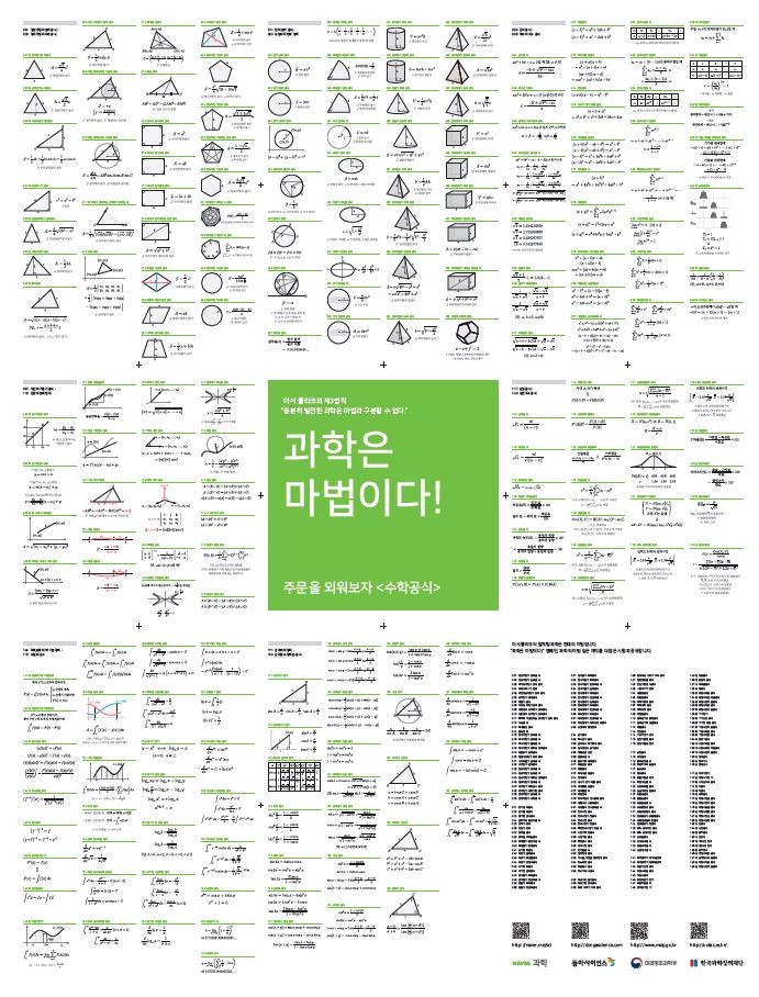 아서 클라크의 충분히 발전한 과학은 마법과 구분할 수 없다. 는 말을 인용하여 인류가 지금까지 발견한 공식, 법칙들도 마법의 주문이라며 '과학은 마법이다'라는 타이틀로 포스터를 제작한 것이 기발한 아이디어인 것 같습니다.